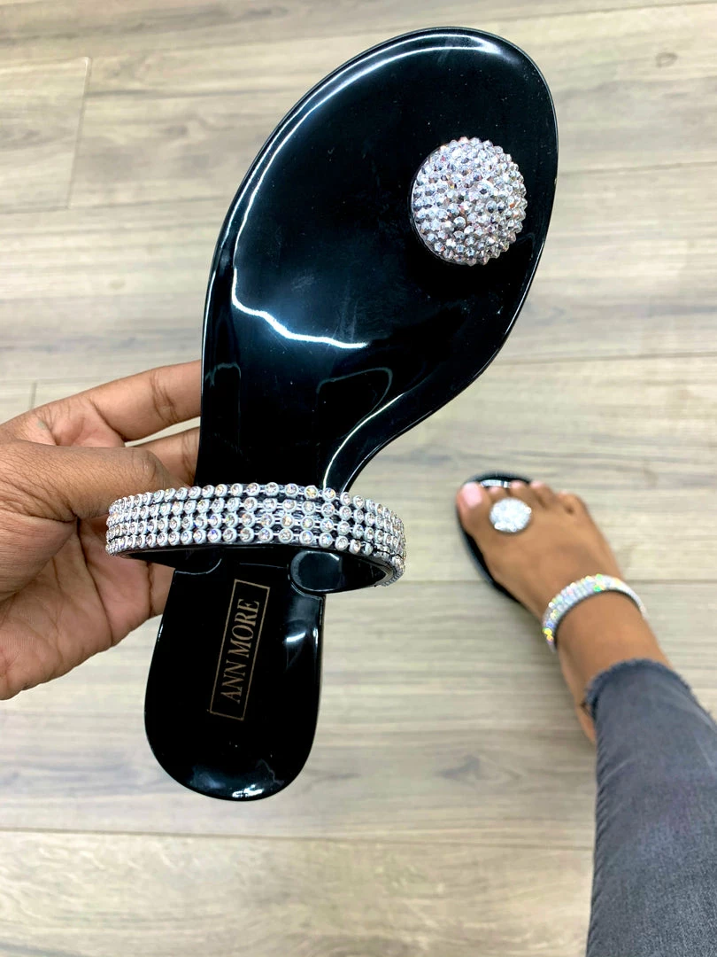 Have everyone’s eyes set on your bejeweled feet with these shining beauties. These jelly sandals feature rhinestone embellished single strap and a rhinestone-encrusted dome charm on the toe.