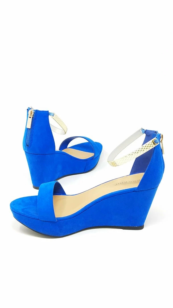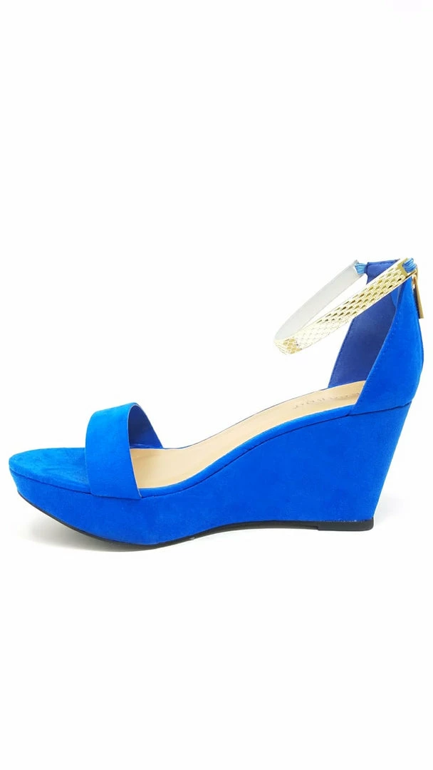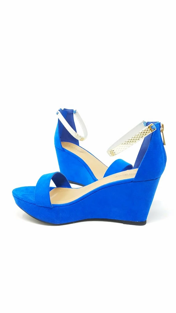 BAMBOO ONE BAND WEDGE WITH ANKLE STRAP IN BLUE SUEDE